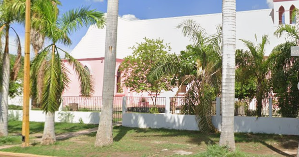 Attached was one image, a small pastel-colored building framed by palm trees.